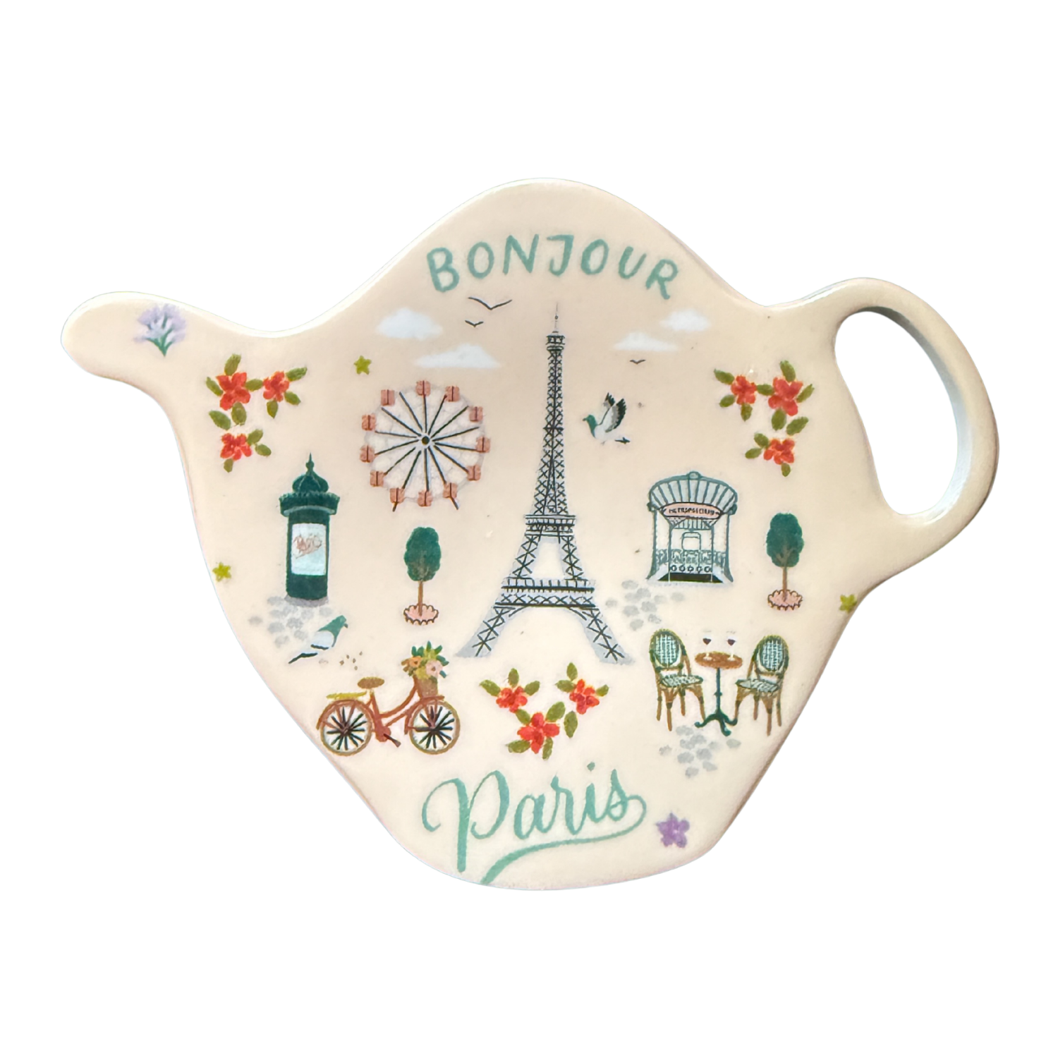 French Teapot Melamine Tray | Tea Bag Holder | Paris-Inspired Ring Dish | Small Decorative Catchall